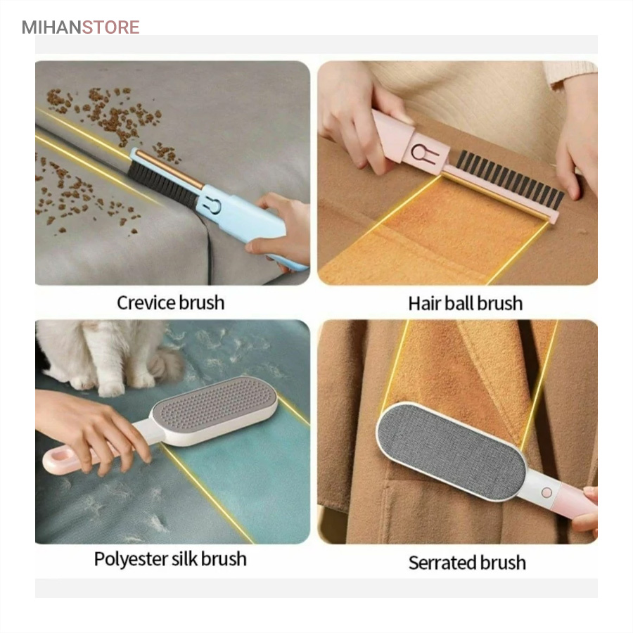 Hair Ball Brush (برس مو و پرز): مخصوص جمعآوری موهای حیوانات و پرزهای روی فرش، مبل و لباس است و سطح را کاملاً صاف و تمیز میکند.
