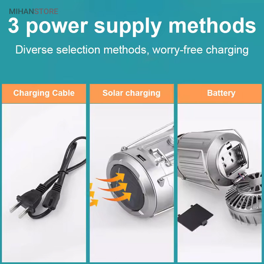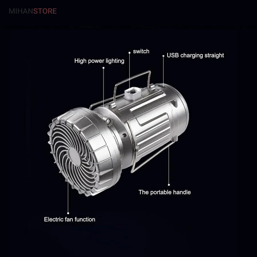 دیگر دستهی درنظرگرفتهشده برای این محصول روی بدنه قرار دارد و همچنین این محصول دارای پنکه ای پر قدرت می باشد که در فصل گرما و برای استفاده در طبیعت واقعا به کار می آید. تولیدکننده برای این محصول لامپ LED مهتابی در نظر گرفته است که عمر خوب و مصرف باتری مناسبی دارند که به شکل فانوسی در محصول قرار دارد. برای شارژ این محصول یک پنل خورشیدی در بالا قرار دادهاند که تاحدی به شارژ باتری کمک میکند. برای شارژ این لامپ میتوان آن را بهوسیلهی کابل موجود در بستهبندی به برق شهری وصل کرد. روی بدنه نیز یک درگاه USB به چشم میخورد که میتوان از آن برای شارژکردن دستگاههای الکترونیکی و به شکل پاوربانک استفاده کرد.