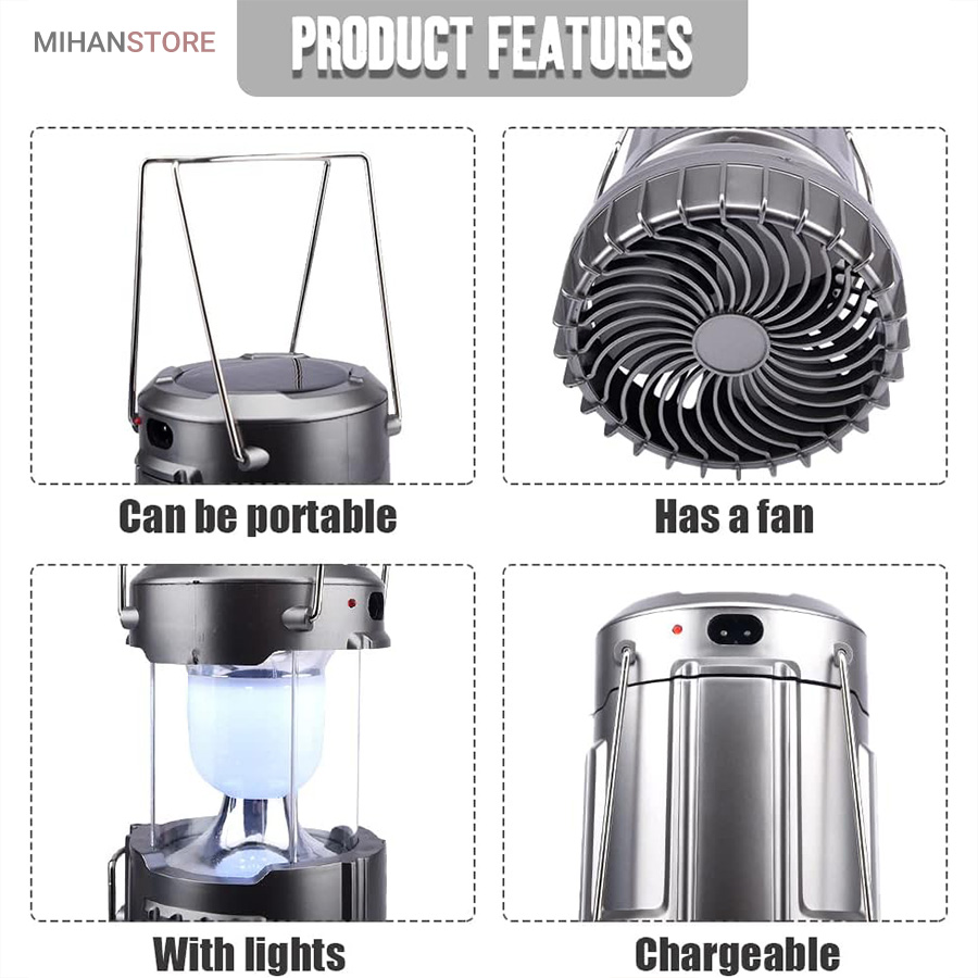 ویژگی های چراغ کمپینگ خورشیدی دارای پنکه و پاوربانک: