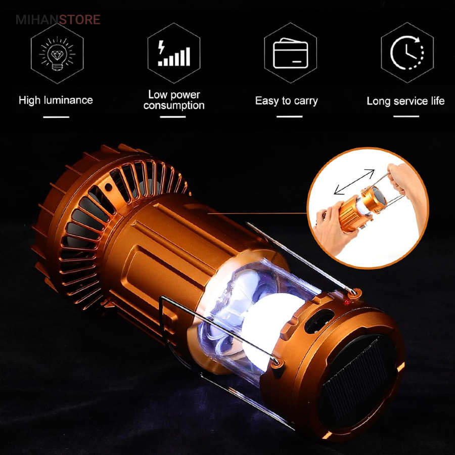 این محصول دارای چراغ مخفی است که با کشیدن محفظه روشن می شود. می توان به عنوان پاور بانک برای شارژ موبایل و تبلت خود استفاده کرد. هم با انرژی خورشیدی و هم با اتصال به برق ۱۱۰~۲۲۰V شارژ می شود. پس از شارژ کامل حدود ۶ ال ۱۰ ساعت روشنایی خواهد داشت. با توجه به طراحی و ویژگیهایی که دارد، انتخاب خوبی برای سفرهای شماست.