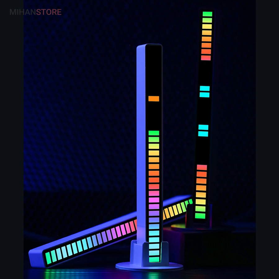 رقص نور اکولایزر حساس به صدا RGB LED یک دکور RGB است که با استفاده از سنسور های صوتی ای که دارد میتواند بر اساس صدای محیط لامپ های آر جی بی خود را به حرکت در آورد و یک رقص نور جذاب را در کنار موسیقی برای شما ایجاد کند. این محصول از نوع برقی بوده و دارای باتری داخلی نمی باشد و نیازی است برای استفاده به صورت مدام به برق متصل باشد. این محصول دارای پایه استند میباشد و که میتوانید به صورت عمودی آن را در هر سطحی که نیاز دارید قرار دهید و علاوه بر آن دارای چسب دو طرفه نصب نیز هست که میتوانید به سطوح مختلف این محصول را بچسبانید و از آن لذت ببرید . مود های سرعت و افکت های حرکت لامپ ها از طریق پنل پشتی قابل تنظیم است.