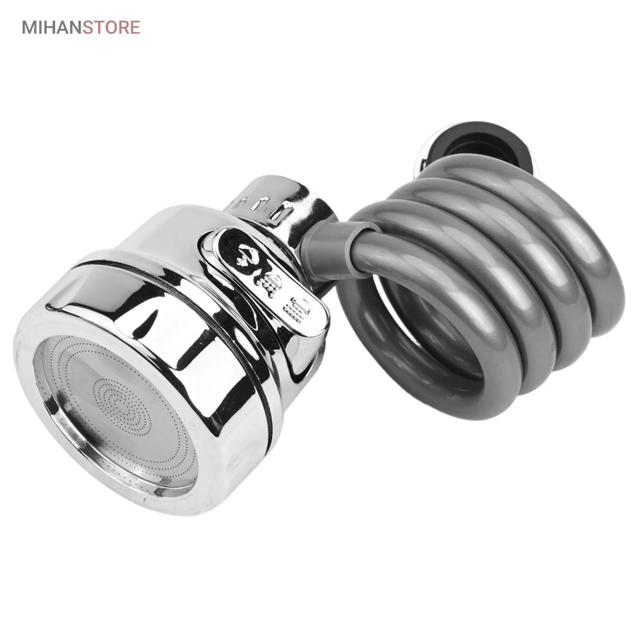 با قابلیت چرخش وسیع 360 درجه به وسیله شلنگ فنری و مجهز به 3 حالت پخش آب، قادر است بطور کامل در تمام جهات بچرخد، تا به هر نقطه‌ای از سینک یا روشویی دسترسی پیدا کند و امکان شستشوی راحت را بدهد. این سر شیر آب، با استفاده از ترکیبی از مواد باکیفیت و پلاستیک ABS، عمر طولانی و دوام بی‌نظیری دارد. نکته: سایز قطر این سری شیر آب برای تمامی شیرهای روشویی و آشپزخانه رایج بازار ایران مناسب می‌باشد. با باز کردن صفحه استیل سری شیر امکان تمیزکردن آن میسر می شود.