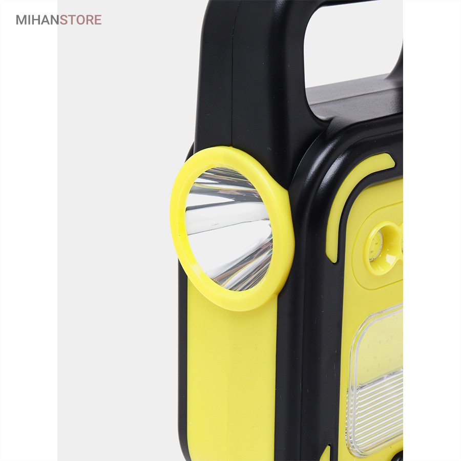 یک وسیله با چندکارایی جالب می باشد. جنس بدنه چراغ کار از ABS و مقاوم در برابر ضربه می باشد. چراغ و پروژکتور اضطراری دارای پاوربانک دارای 4 حالت نوردهی که شامل: چراغ قوه سفید و چراغ قوه آفتابی با نور زرد و چراغ جانبی قوی COB شش چراغه با نور قوی و چراغ جانبی کوچک میباشد. چراغ کار چند کاره دارای ویژگی هایی چون: دست گیره، قابلیت شارژ با برق شهری و نور خورشید، و خروجی USB برای شارژ موبایل می باشد.